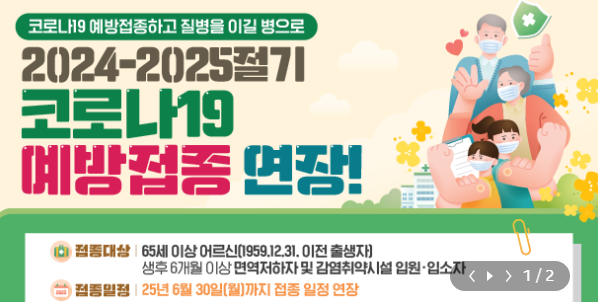 이번 코로나19 예방접종은 특히 고위험군을 대상으로 하며, 감염병에 취약한 국민들의 건강을 보호하고 의료체계 부담을 줄이는 것을 목표로 합니다. 접종은 2025년 6월 30일까지 진행되며, 신분증만 지참하면 가까운 의료기관에서 예약 없이도 접종이 가능합니다.